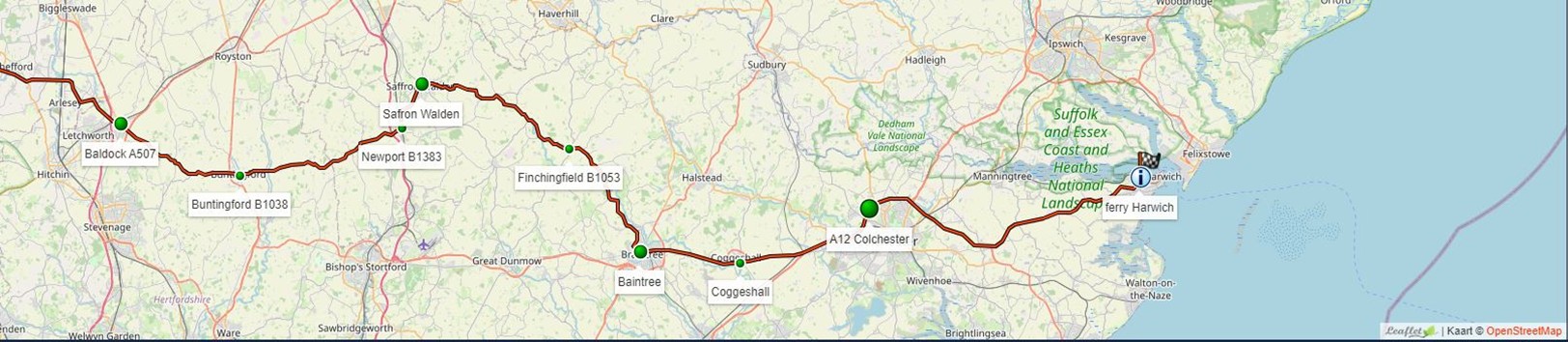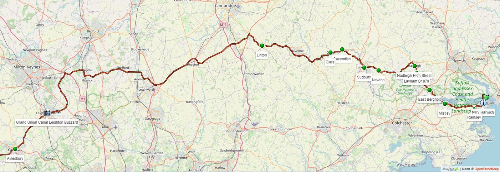 Wir verlassen Harwich und die Hauptstraße, um auf Nebenstraßen die ländliche Umgebung zu genießen. Wir fahren durch das reizvoll an einer Bucht gelegene Mistley. Dann reisen wir zu der stillen Umgebung des Stour-Tals weiter, wobei wir unterwegs viele idyllische Dörfer durchqueren. Bitte achten Sie auf plötzlich entstehende Situationen, vor allem mit landwirtschaftlichen Fahrzeugen, Briefträgern, Lieferanten usw. Das ländliche England ist nicht nur rustikal, sondern auch eine Wirtschaftsregion.