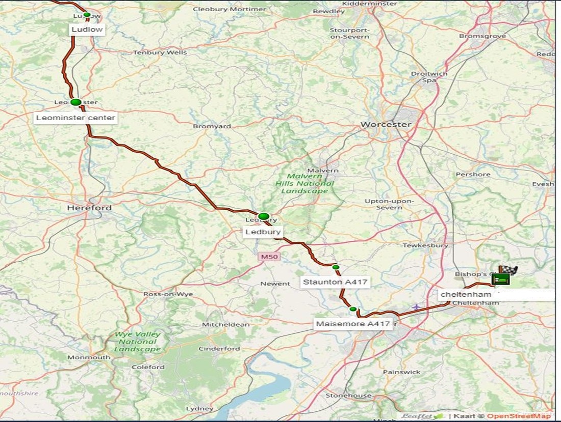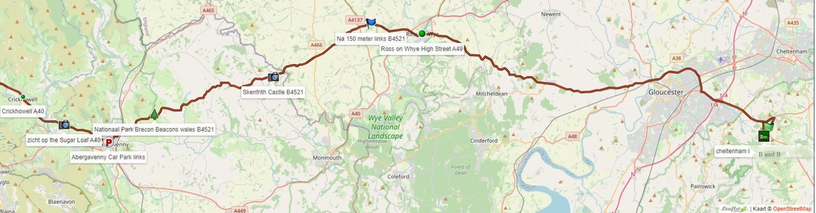 Über Gloucester und Ross auf Wye nach Abergevenny. Auf dem Weg nach Abergevenny nehmen wir die B 541 "die alte Ross Straße." Wir Touren durch eine wunderschöne Parklandschaft.