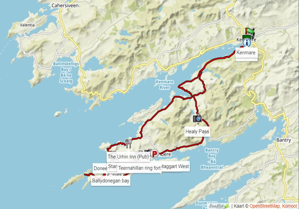 Die Rückfahrt über Cahermore, Ballydonegan Bay, Allihies und Eyeries ist ebenfalls bemerkenswert. So sind beispielsweise alle Häuser der Hauptstraße von Allihies in leuchtenden Farben gestrichen, und man hat einen herrlichen Blick auf die Bucht. Allihies war einst Standort bedeutender Kupferminen. Daphne du Maurier schrieb darüber die Novelle „Hungry Hill“, die später verfilmt wurde. Wir fahren zurück nach Kenmare und genießen heute Abend vielleicht noch ein köstliches Steak im Pub bei irischer Live-Folkmusik.