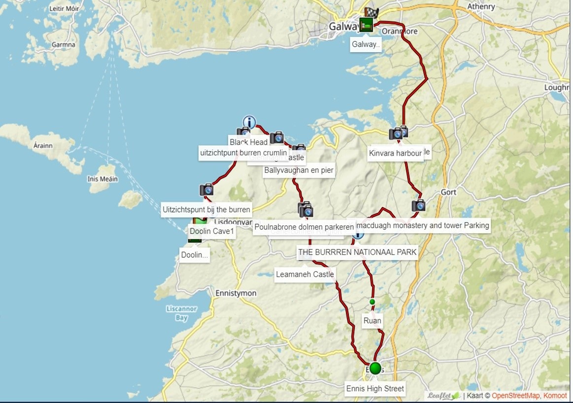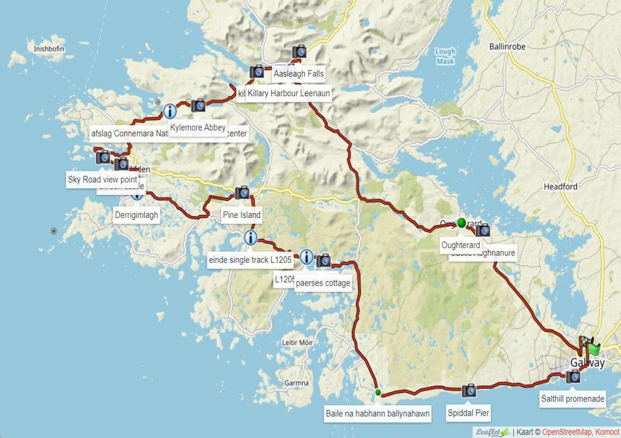 Wir fahren über den Hafen von Killarny und das Dorf Leenaun (auch Leenane genannt) zurück. Dort gibt es eine wunderschöne Aussicht und einen Pub, in dem man etwas essen oder trinken kann. Bootsausflüge auf dem Fjord werden ebenfalls angeboten.