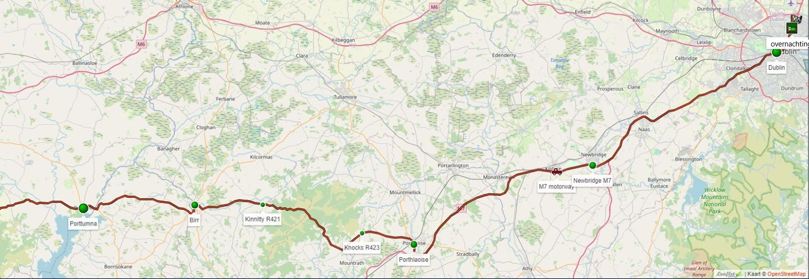 Nach Portlaoise führt die Route weiter auf der N7 nach Dublin. Falls Sie wenig Zeit haben oder genug von der Landschaft gesehen haben, können Sie ein Stück der Autobahn M7 nehmen, die Sie schnell nach Dublin bringt.