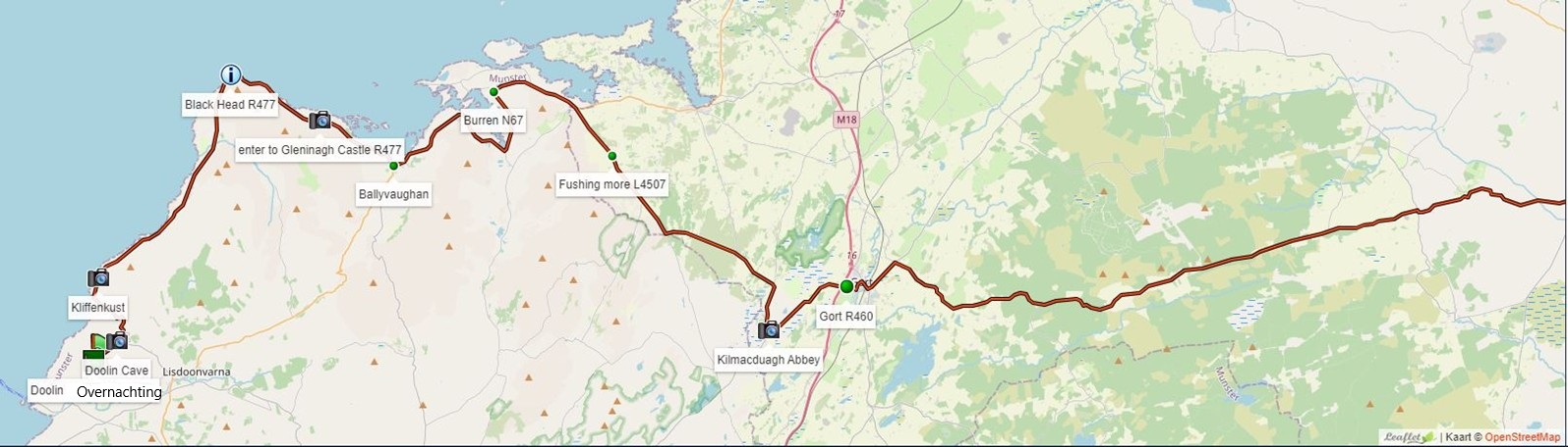 Kurz nach Doolin passieren wir die Doolin-Höhle. Betreten Sie sie und bewundern Sie einen 7,3 Meter hohen Stalaktiten. Wenig später erreichen wir die Küste, wo Sie erneut atemberaubende Ausblicke auf die wilden Klippen genießen können. Die Straße verläuft stellenweise nah am Meer. Entlang dieser Strecke gibt es viel zu entdecken. Halten Sie unbedingt an der Küstenstraße an, wenn Sie in der Nähe der Klippen fahren, und genießen Sie die Aussicht.Ihr Navigationsgerät zeigt Ihnen einige geeignete Plätze an. Wir verbringen den Großteil des Tages im wunderschönen Naturschutzgebiet Burren. Kilometerlange unberührte Natur. Steile Klippen bilden die Grenze zum Meer. Dort befinden sich zahlreiche prähistorische Denkmäler. Es handelt sich um ein UNESCO-geschütztes Naturschutzgebiet.