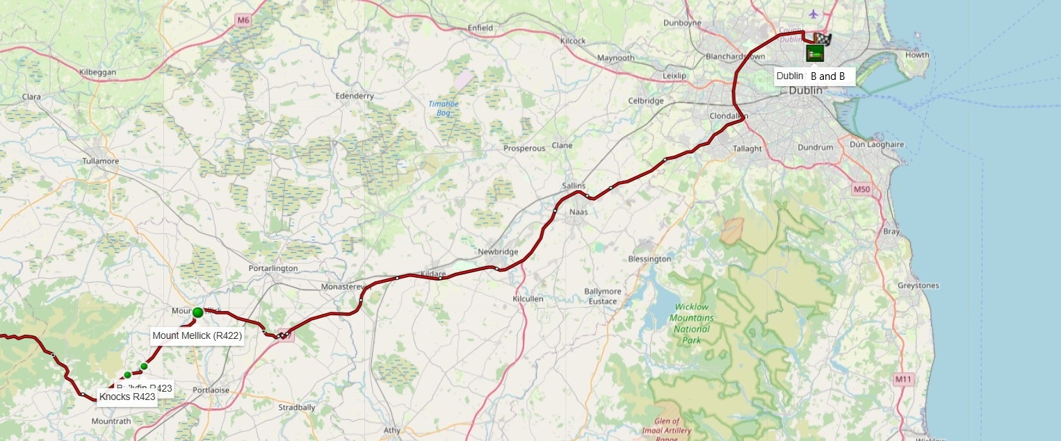 Route Rosslare Ferry- B and B Rosslare in GPS-Datei