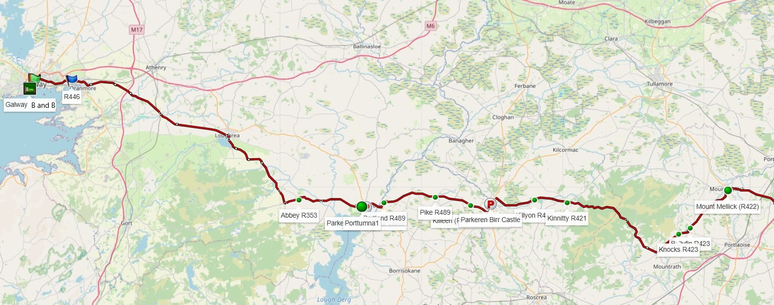Wir verlassen diese wunderschöne Gegend und erreichen Portumna, eine Marktstadt am Ufer des mächtigen Lough Derg. Sie liegt an der Mündung des Shannon in den See. Früher gab es hier eine Fährverbindung, heute führt eine Brücke darüber. Lough Derg ist bei Wassersportlern sehr beliebt.