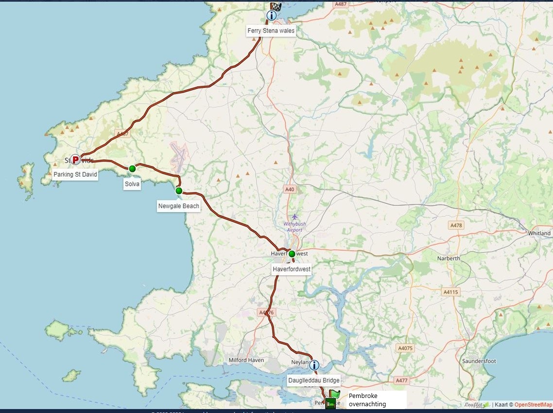 Wir fahren durch den Hauptplatz Haverfordwest Zu einem schönen Strand mit Meresblick the Newgale Beach. Und fahren danach durch die Bucht von Solva weiter entlang der Küste.