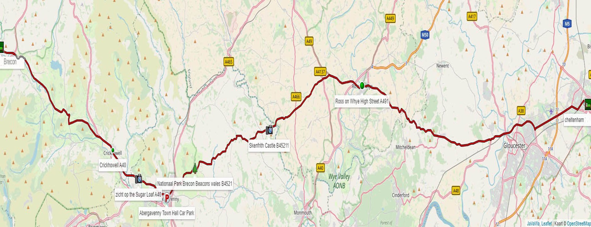 We rijden via Gloucester en Ross on Wye naar Abergevenny. Op het traject naar Abergevenny nemen we de B541 the Old Ross Road . We komen zo door een parkachtig landschap.