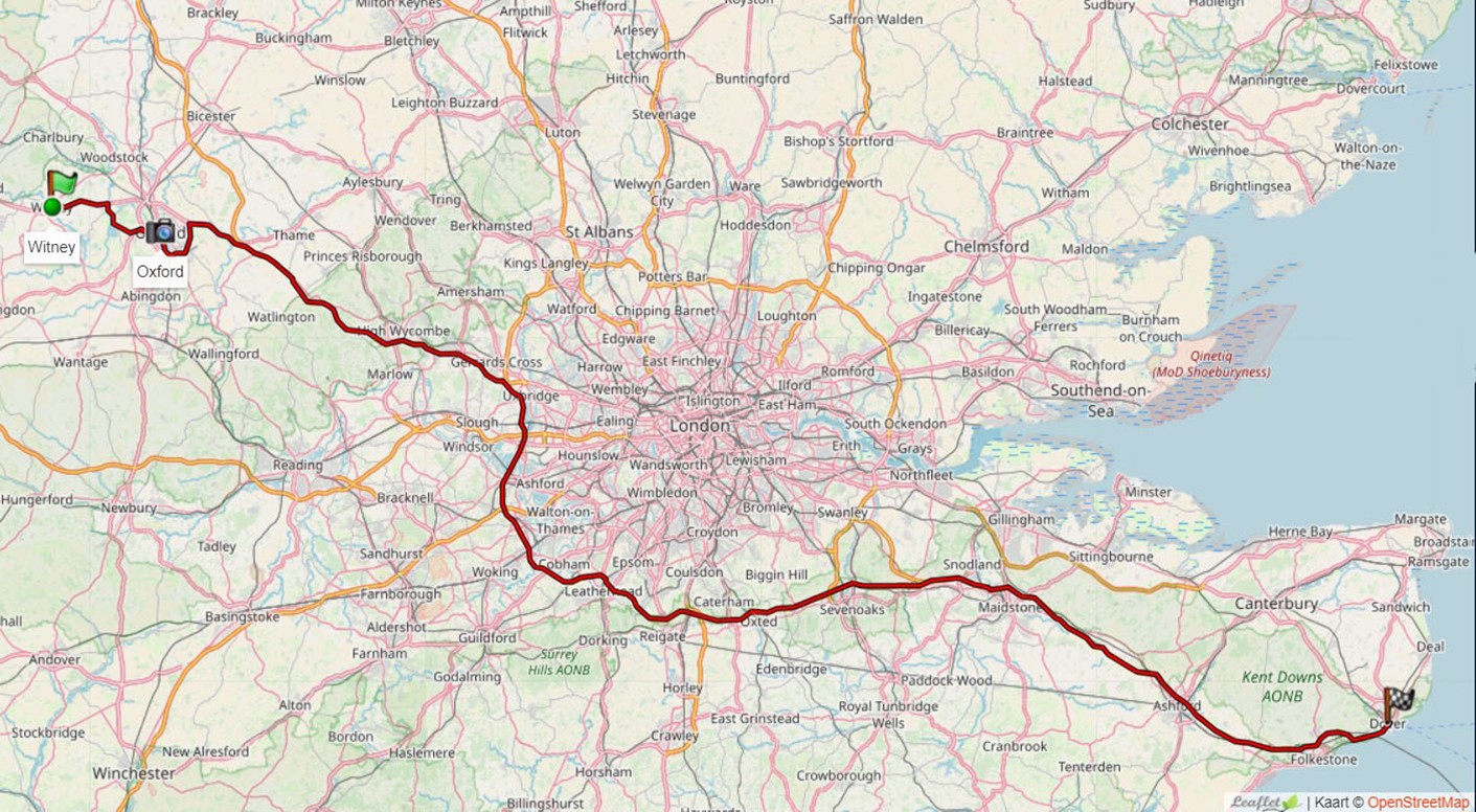 Vanuit Oxford naar de Ferry in Dover