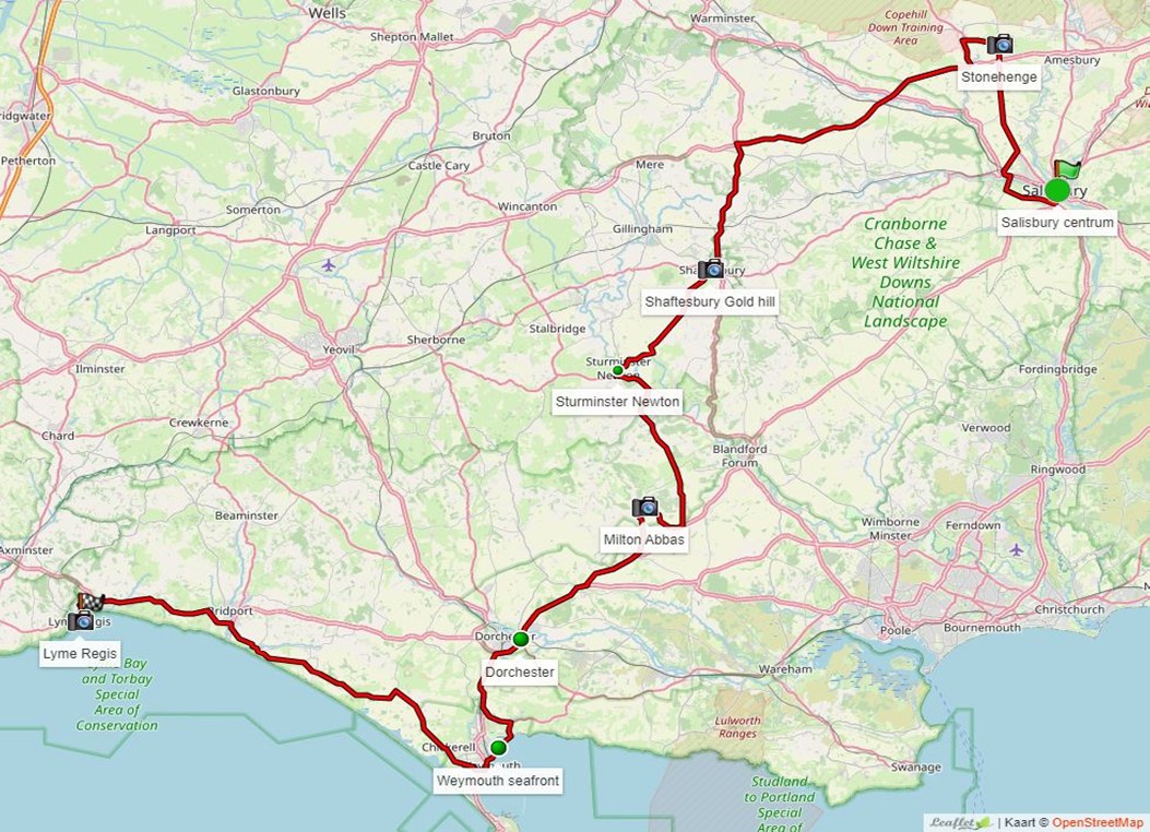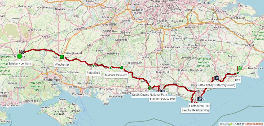 De kust en de landelijke graafschappen West Sussex en Hampshire. Onderweg leuke marktplaatsjes waaronder het bekende "antiekstadje" Petworth. Om na een heerlijk dagje genieten van het Engelse landschap, in de kathedraalstad Salisbury in het graafschap Wiltshire te belanden.