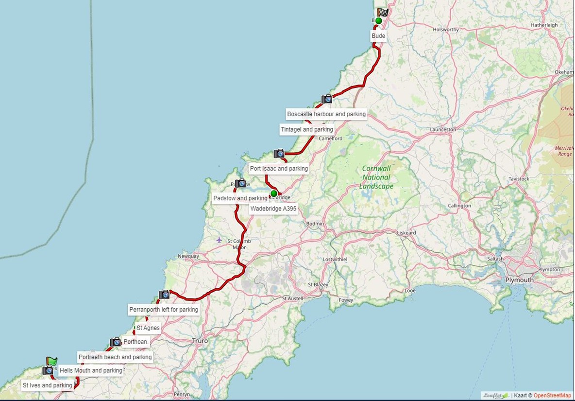 We kiezen niet vaak voor de hoofdwegen. Waar enigszins mogelijk kiezen we voor kleinere sfeervolle toerwegen. Vooral langs de kust in Cornwall kun je wegen tegenkomen met minder goed asfalt en blinde bochten. Deze vragen extra oplettendheid, motorbeheersing en stuurvaardigheid. ( we geven dit waar mogelijk aan.) Spreekt vanzelf: Pas je snelheid aan waar nodig om alle situaties aan te kunnen.